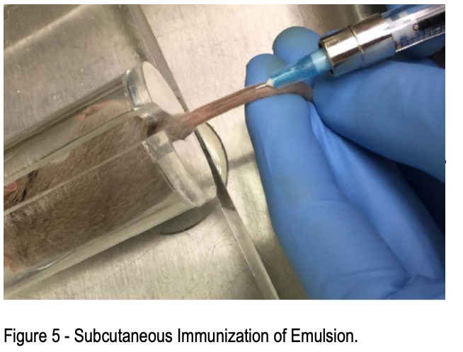 3. Inject 0.1 ml (100 µg antigen/mouse) of the emulsion subcutaneously at the base of the tail.